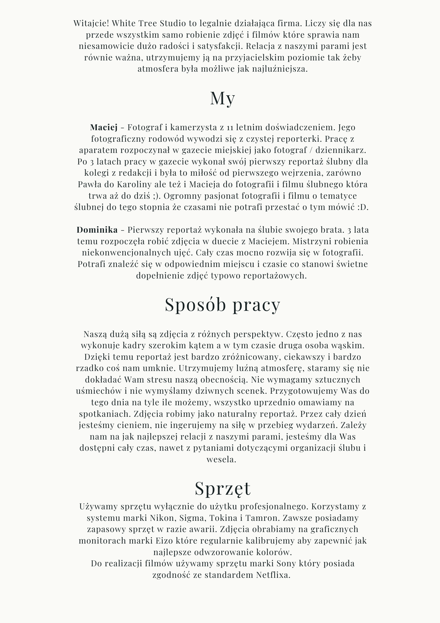 Strona White Tree Fotografia wykorzystuje pliki cookies m.in. w celu poprawienia jej dostępności, personalizacji, obsługi kont użytkowników czy aby zbierać dane, dotyczące ruchu na stronie. Każdy może sam decydować o tym czy dopuszcza pliki cookies, ustawiając odpowiednio swoją przeglądarkę.